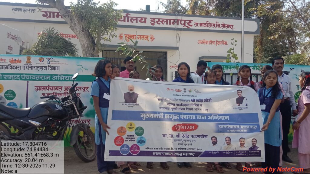 सोलापूर जिल्ह्यातील माळशिरस येथील इस्लामपूर ग्रामपंचायत स्वच्छ, शिक्षित आणि डिजिटलदृष्ट्या सक्षम गाव निर्माण करण्यासाठी वचनबद्ध आहे. आम्ही स्वच्छता, पाणीपुरवठा, ग्रामीण रस्ते सुधारण्यावर आणि सक्रिय नागरिकांच्या सहभागाद्वारे शाश्वत विकासाला चालना देण्यावर लक्ष केंद्रित करतो.